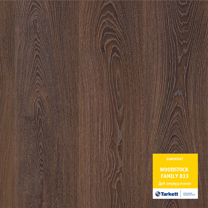 Коллекция Woodstock Family 833. 33 класс. В упаковке = 8шт (2.005кв.м) Тиснение в регистре. Эффект хромированной доски. Глубокая выразительная структура