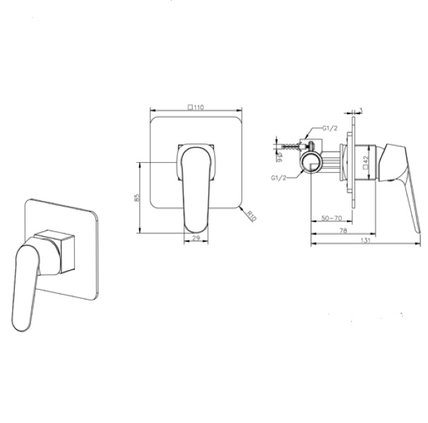 Смеситель Esko New York NY 83 для душа. Встраиваемый. В комплекте: керамический картридж, эксцентрик, отражатель.